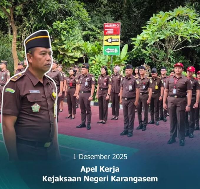 Senin, 1 Desember 2025 — Bertempat di Kantor Kejaksaan Negeri Karangasem, Kepala Sub Bagian Pembinaan, I Gusti Lanang Ngurah Saputra, S.H., memimpin pelaksanaan Apel Kerja rutin yang diikuti oleh seluruh pegawai Kejaksaan Negeri Karangasem.
