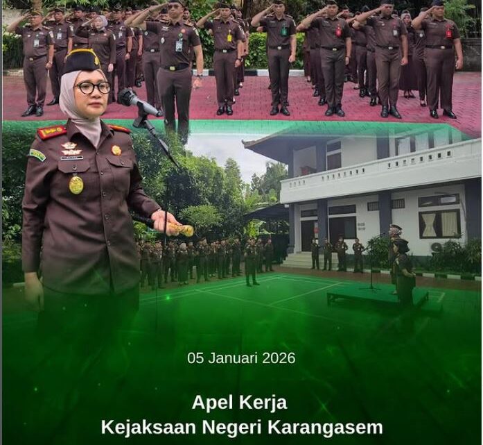 Senin, 5 Januari 2026 — Bertempat di Kantor Kejaksaan Negeri Karangasem, Kepala Kejaksaan Negeri Karangasem, Shinta Ayu Dewi RR, S.H., M.H., memimpin pelaksanaan Apel Kerja minggu pertama di awal tahun 2026 yang diikuti oleh seluruh pegawai Kejaksaan Negeri Karangasem.