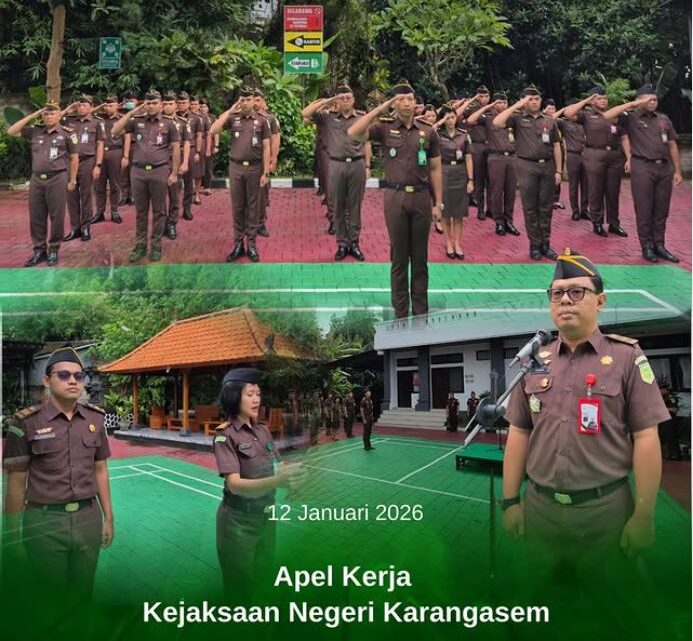 Senin, 12 Januari 2026, Kejaksaan Negeri Karangasem melaksanakan apel kerja rutin yang bertempat di lapangan Kantor Kejaksaan Negeri Karangasem. Apel kerja rutin tersebut dipimpin oleh Kepala Seksi Tindak Pidana Umum Kejari Karangasem, Johan Satya Adhyaksa, S.H., M.H., serta diikuti oleh seluruh pegawai Kejaksaan Negeri Karangasem.