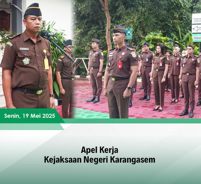 Senin, 19 Mei 2025, bertempat di Kantor Kejaksaan Negeri Karangasem, Kepala Subbagian Pembinaan Kejaksaan Negeri Karangasem, I Gusti Lanang Ngurah Saputra, S.H., memimpin Apel Kerja yang diikuti oleh para pegawai pada Kejaksaan Negeri Karangasem.