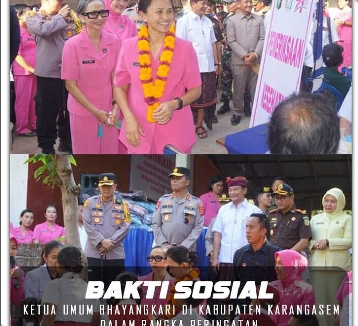 Kepala Kejaksaan Negeri Karangasem Dr. Endang Tirtana, SH. MH. C.L.A. Didampingi Ketua Ikatan Adhyaksa Dharmakarini Daerah Karangasem Ny. Yasinta Tirtana Menghadiri Bakti Sosial Ketua Umum Bhayangkari Dalam Rangka Peringatan Hari Kesatuan Gerak Bhayangkari (HKGB) ke-71 Yang Mengambil Tema “Bhayangkari Peduli” di Banjar Dinas Munti Gunung, Desa Tianyar Tengah, Kecamatan Kubu, Kabupaten Karangasem, Rabu (6/9/2023).