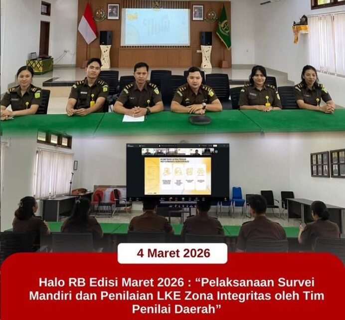 Rabu, 4 Maret 2026, Kaur Perlengkapan, Perencana Keahlian beserta jajaran Bidang Pembinaan pada Kejaksaan Negeri Karangasem mengikuti kegiatan Halo RB Edisi Maret 2026 dengan tema “Pelaksanaan Survei Mandiri dan Penilaian LKE Zona Integritas oleh Tim Penilai Daerah” yang diselenggarakan secara daring.