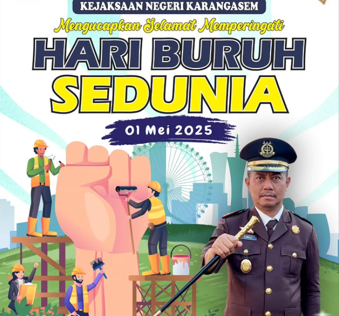 Kepala Kejaksaan Negeri Karangasem, Suwirjo, S.H.,M.H. beserta Keluarga Besar Kejaksaan Negeri Karangasem mengucapkan Selamat Memperingati Hari Buruh Sedunia, 1 Mei 2025.