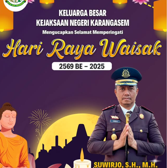 Kepala Kejaksaan Negeri Karangasem, Suwirjo, S.H., M.H., beserta Keluarga Besar Kejaksaan Negeri Karangasem Mengucapkan Selamat Memperingati Hari Raya Waisak 2569 BE – 12 Mei 2025.