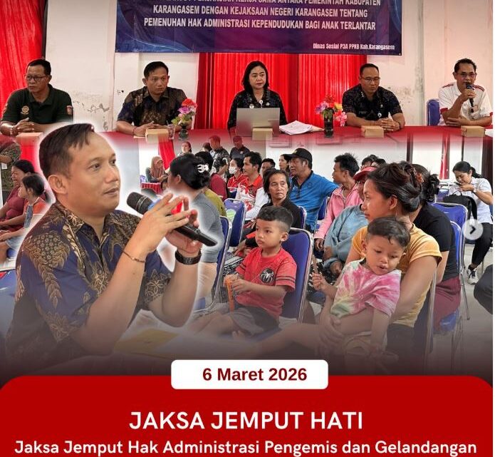 Jumat, 6 Maret 2026 Jaksa Pengacara Negara (JPN) pada Kejaksaan Negeri Karangasem berperan aktif dalam pemenuhan hak administrasi kependudukan bagi 95 (sembilan puluh lima) gelandangan dan pengemis yang telah dipulangkan atau direunifikasi, khususnya bagi anak-anak di bawah umur.