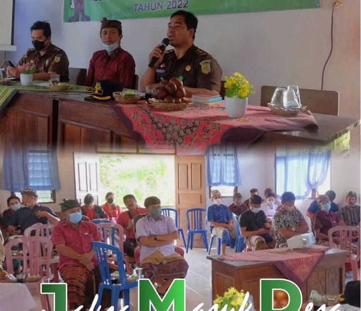 Kamis, 19 Mei 2022, bertempat di Aula Kantor Desa Sibetan, Kasi Intel serta Kasi Pidum Kejaksaan Negeri Karangasem melaksanakan kegiatan Jaksa Masuk Desa, dalam kegiatan yang di hadiri oleh Perbekel Sibetan, Kawil se-Desa Sibetan, Ketua Karangtaruna Desa sibetan, Bendesa adat Sibetan, Ketua Pecalang Desa Sibetan serta Paiketan Kepemangkuan Desa Sibetan. Dengan pemaparan mengenai sosialisai program Restoratif Justice dan permasahana hukum yang dihadapi masyarakat di Desa Sibetan (Narkotika, Perlindungan anak dan Tindak Pidana Umum Lainnya) .