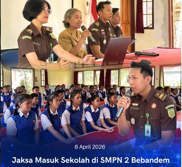 Senin, 6 April 2026, Kejaksaan Negeri Karangasem kembali hadir di tengah dunia pendidikan melalui program Jaksa Masuk Sekolah (JMS) yang kali ini dilaksanakan di SMP Negeri 2 Bebandem. Mengusung tema “Anti Perundungan dan Bijak dalam Bermedia Sosial,” kegiatan ini menjadi wujud nyata komitmen kejaksaan dalam menanamkan kesadaran hukum sejak dini kepada para pelajar.