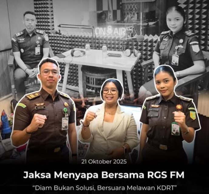 Selasa, 21 Oktober 2025, Kejaksaan Negeri Karangasem bekerja sama dengan RGS FM menggelar program Jaksa Menyapa dengan tema “Diam Bukan Solusi, Bersuara Melawan KDRT.” Hadir sebagai narasumber, Kasubsi 1 pada Seksi Intelijen Kejari Karangasem, Ardi Putra Dewa Agung, S.H., M.H., bersama Jaksa Ahli Pertama, Rachel Chelsia Gautama, S.H. Kegiatan ini menjadi sarana edukasi hukum kepada masyarakat, khususnya dalam membangun kesadaran tentang pentingnya melawan kekerasan dalam rumah tangga.