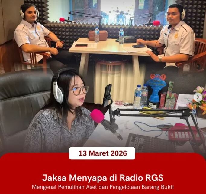 Jumat, 13 Maret 2026, telah dilaksanakan kegiatan Jaksa Menyapa melalui siaran dialog interaktif di Radio RGS dengan mengangkat tema Pemulihan Aset dan Pengelolaan Barang Bukti.
