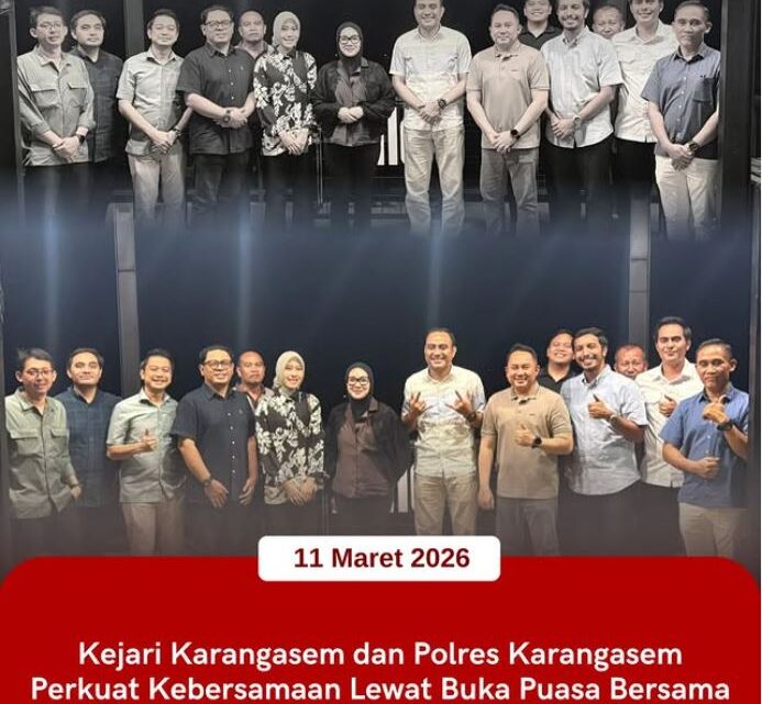 Rabu, 11 Maret 2026, Kepala Kejaksaan Negeri Karangasem, Shinta Ayu Dewi RR, S.H., M.H., bersama para Kepala Seksi (Kasi) dan Kasubag melaksanakan kegiatan buka puasa bersama dengan Kapolres Karangasem, AKBP I Made Santika, S.H., S.I.K., M.I.K., beserta jajaran Pejabat Utama Polres Karangasem.
