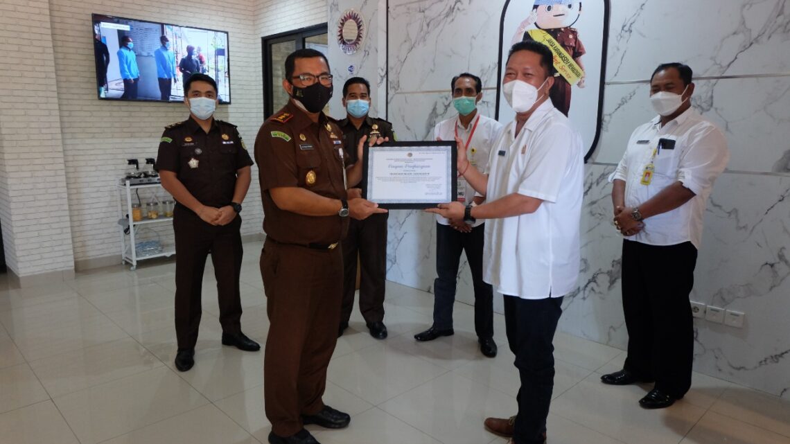 menerima Piagam Penghargaan dari Kepala Badan Pertanahan Nasional (BPN) Kabupaten Karangase, Rabu (13/10/2021) bertempat di Kantor Kejaksaan Negeri Karangasem.