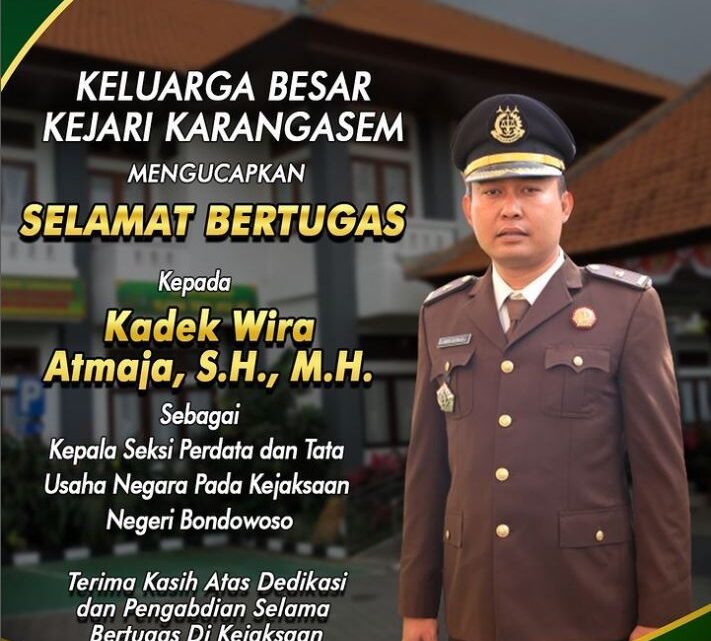 Keluarga Besar Kejaksaan Negeri Karangasem Mengucapkan Selamat Bertugas Kepada Kadek Wira Atmaja, S.H., M.H. Di Tempat Yang Baru Sebagai Kepala Seksi Perdata dan tata Usaha Negara Pada Kejaksaan Negeri Bondowoso