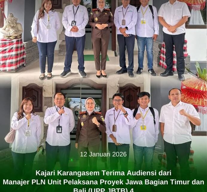 Senin, 12 Januari 2026 — Kepala Kejaksaan Negeri Karangasem, Shinta Ayu Dewi R.R., S.H., M.H., menerima kunjungan dari Manajer PLN Unit Pelaksana Proyek Jawa Bagian Timur dan Bali (UPP JBTB) 4, Eko Janu Irianto.