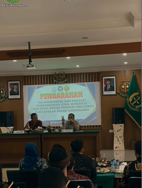 Paha hari Jumat, 15 Agustus 2025, Kepala Kejaksaan Negeri Karangasem, Suwirjo, S.H., M.H., bersama para Kasi dan Kasubagbin, menyambut hangat kunjungan Inspektur Muda Keuangan II pada JAM Pengawasan, Bapak Bayu Adhinugroho Arianto, S.H., M.H., beserta tim penilaian keuangan JAM Pengawasan. Kunjungan ini dalam rangka pelaksanaan pembangunan Zona Integritas menuju WBK (Wilayah Bebas dari Korupsi) dan WBBM (Wilayah Birokrasi Bersih dan Melayani) di lingkungan Kejaksaan R.I, khususnya wilayah hukum Kejari Karangasem.
