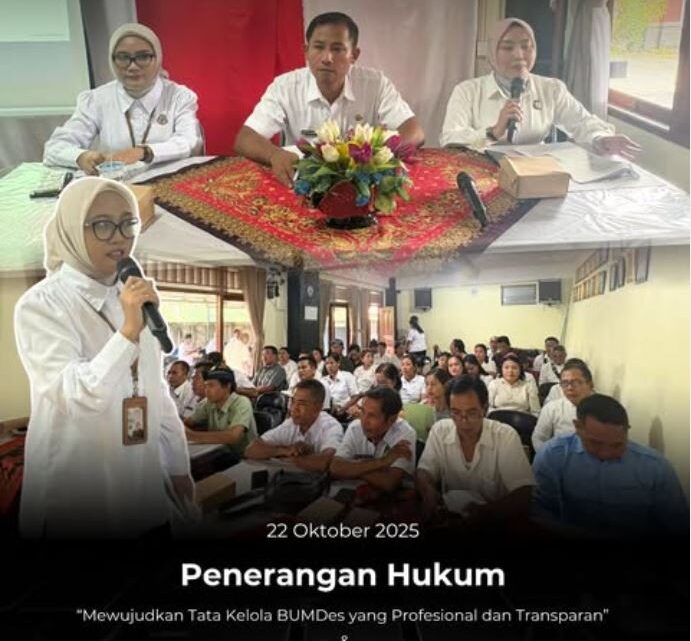Rabu, 22 Oktober 2025, Kejaksaan Negeri Karangasem melaksanakan kegiatan Penerangan Hukum “Jaga Desa – Jaksa Garda Desa” yang bertempat di Aula Kantor Camat Abang. Kegiatan ini mengangkat dua tema penting, yaitu “Mewujudkan Tata Kelola BUMDes yang Profesional dan Transparan” serta “Meningkatkan Kapasitas SDM Pemerintah Desa dan Penerapan Prinsip Kehati-hatian dalam Pengelolaan Dana Desa”. Hadir sebagai narasumber yaitu Yosi Novita Anggraini, S.H., M.H., Kasubsi Pertimbangan Hukum pada Seksi Perdata dan TUN Kejari Karangasem, serta Fitri Ika Kurniawati, S.H., Jaksa Ahli Pertama. Kegiatan ini diikuti oleh para Perbekel, Ketua BUMDes, dan Bendahara Desa se-Kecamatan Abang.