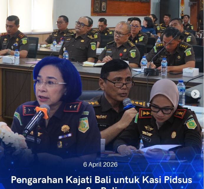 Senin, 6 April 2026 Kepala Kejaksaan Negeri Karangasem, Shinta Ayu Dewi RR, S.H., M.H., didampingi Kepala Seksi Tindak Pidana Khusus Kejari Karangasem, mengikuti kegiatan pengarahan yang diselenggarakan oleh Kepala Kejaksaan Tinggi Bali terkait penilaian kinerja pada Bidang Tindak Pidana Khusus di seluruh Kejaksaan Negeri se-wilayah hukum Kejaksaan Tinggi Bali.
