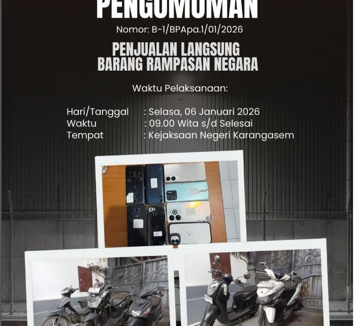 Seksi Pemulihan Aset dan Pengelolaan Barang Bukti Kejaksaan Negeri Karangasem akan melaksanakan Penjualan Langsung Barang Rampasan Negara, pada: