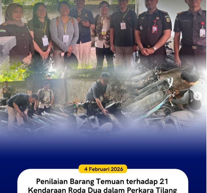 Rabu, 4 Februari 2026, Kejaksaan Negeri Karangasem melaksanakan Penilaian Barang Temuan terhadap 21 kendaraan roda dua dalam perkara tilang (verstek). Penilaian dilakukan oleh Tim Penilai KPKNL Singaraja untuk memastikan setiap aset sitaan negara dinilai secara akurat dan sesuai prosedur. Kegiatan ini merupakan bagian dari upaya Kejaksaan Negeri Karangasem dalam pengelolaan barang bukti yang transparan, tertib, dan profesional.