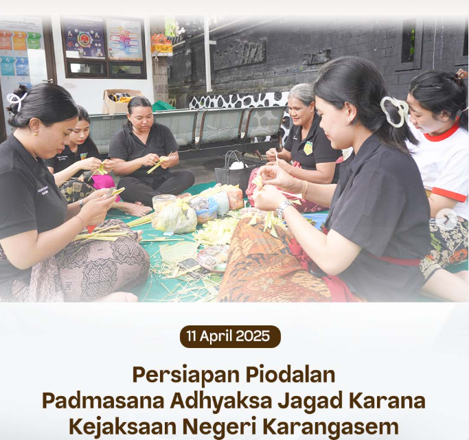 Jumat, 11 April 2025, bertempat di Kejaksaan Negeri Karangasem, para pegawai dan PPNPN melaksanakan persiapan piodalan Padmasana Adhyaksa Jagad Karana yang jatuh pada Purnama Kadasa.