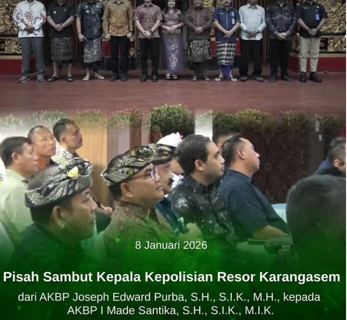 Kamis, 8 Januari 2026, Kepala Kejaksaan Negeri Karangasem yang diwakili oleh Kepala Seksi Pemulihan Aset dan Pengelolaan Barang Bukti, Aditya Wisnu Mulyadi, S.H., M.H., menghadiri Acara Pisah Sambut Kepala Kepolisian Resor Karangasem yang diselenggarakan di Wantilan Sabha Prakerthi, Kantor Bupati Karangasem.