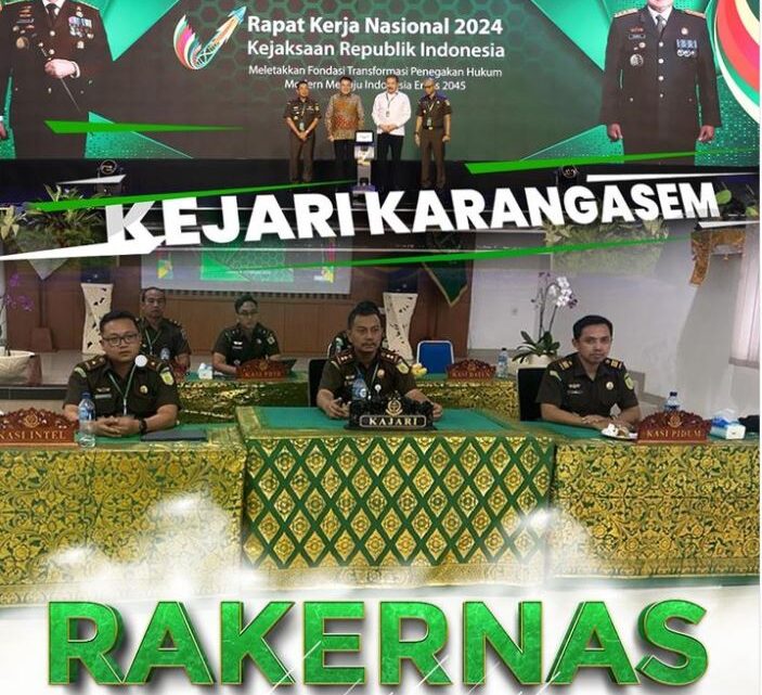 Jan 09 2024 0 RAKERNAS KEJAKSAAN NEGERI KARANGASEM TAHUN 2024 By Kejari_Karangasem Pada hari Selasa, 9 Januari 2024, bertempat di Aula Kejaksaan Negeri Karangasem, Kepala Kejaksaan Negeri Karangasem, Suwirjo, S.H.,M.H. beserta jajaran mengikuti Rapat Kerja Nasional Kejaksaan RI Tahun 2024 secara daring melalui video conference. @kejaksaan.ri@kejaksaan_tinggi_bali Post navigation Previous PostPrevious SOSIALISASI KOMPENSASI TANAH, BANGUNAN, DAN TANAMAN DIBAWAH RUANG BEBAS SUTT 150 KV KUBUNext PostNext RAKERNAS HARI KE-2