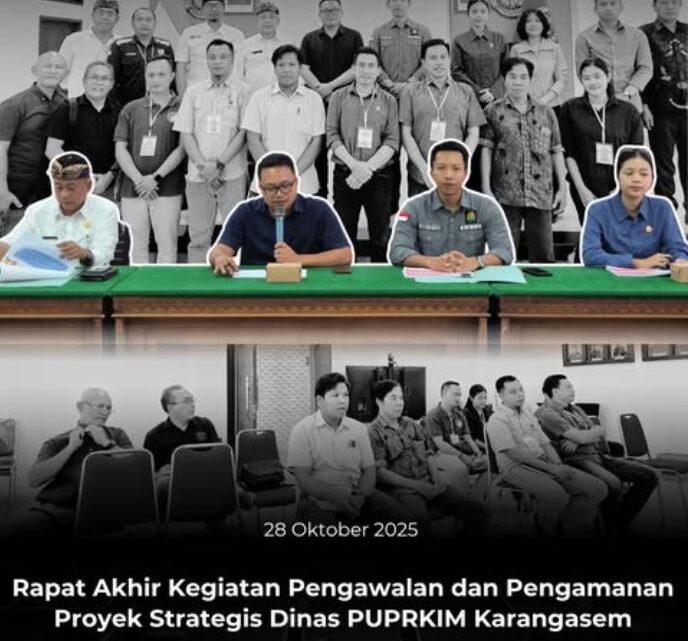 Selasa, 28 Oktober 2025, Kejaksaan Negeri Karangasem melalui Seksi Intelijen melaksanakan Rapat Akhir Kegiatan Pengawalan dan Pengamanan Proyek Strategis Dinas PUPRKIM Kabupaten Karangasem. Kegiatan tersebut dipimpin oleh Kasi Intelijen Kejaksaan Negeri Karangasem, I Komang Ugra Jagiwirata, S.H., M.H., dan dihadiri oleh Kadis PUPRKIM, pihak konsultan perencana, konsultan pengawas, serta kontraktor yang terlibat dalam proyek strategis daerah milik Dinas PUPRKIM Kabupaten Karangasem, meliputi: Pembangunan Jalan Ruas Dlundungan–Asti, Pembangunan Jalan Ruas Batuampin–Kombang, Pembangunan Jembatan/Box Culvert Tukad Bias Membah Ruas Jalan Telengan–Panti.