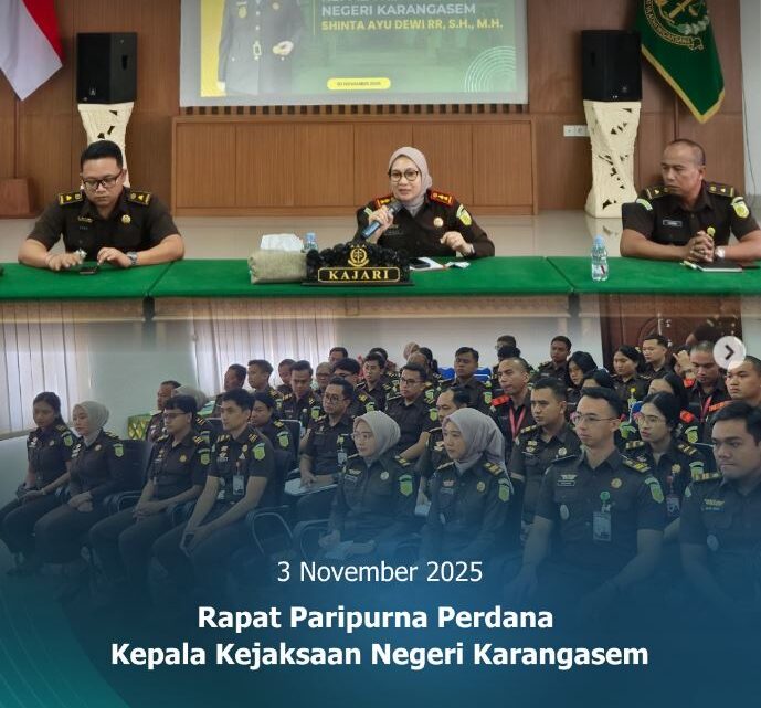 Rapat paripurna ini dipimpin langsung oleh Kepala Kejaksaan Negeri Karangasem, Shinta Ayu Dewi RR, S.H., M.H., sebagai bentuk komitmen dalam memperkuat koordinasi, meningkatkan kinerja, serta memastikan optimalisasi tugas dan fungsi di masing-masing bidang.