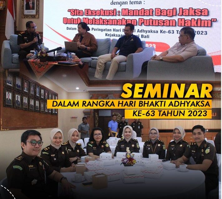 Kepala Kejaksaan Negeri Karangasem Dr. Endang Tirtana, S.H., M.H. Bersama Kasi Pidana Khusus dan Perwakilan Jaksa Mengikuti Seminar Yang Diselenggarakan Dalam Rangka Hari Bhakti Adhyaksa Ke-63 Tahun 2023 Dengan Tema “Sita Eksekusi : Mandat Bagi Jaksa Untuk Melaksanakan Putusan Hakim” Bertempat di AUla Kejaksaan Tinggi Bali.