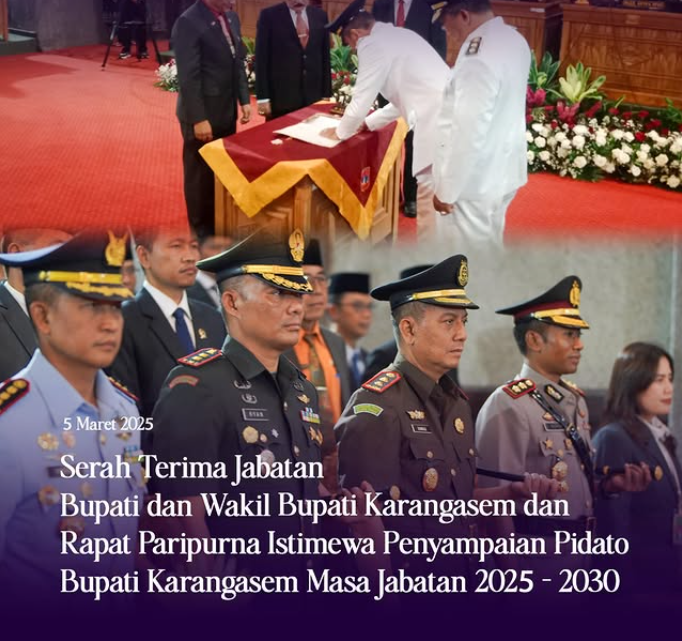 SERAH TERIMA JABATAN BUPATI DAN WAKIL BUPATI KARANGASEM DAN RAPAT PARIPURNA ISTIEWA PENYAMPAIAN PIDATO BUPATI KARANGASEM MASA JABATAN 2025-2030
