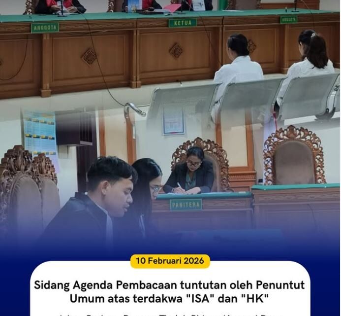 Selasa, 10 Februari 2026 Jaksa Penuntut Umum Kejari Karangasem telah melaksanakan Sidang dengan agenda pembacaan tuntutan oleh Penuntut Umum atas terdakwa “ISA” dan “HK” dalam Perkara Dugaan Tindak Pidana Korupsi Dana Lembaga Perkreditan Desa (LPD) Desa Adat Beluhu, Desa Tulamben, Kec. Kubu, Kab. Karangasem pada Pengadilan Negeri Denpasar Kelas IA Khusus yang dihadiri 2 (dua) orang terdakwa. Agenda selanjutnya yakni pledoi