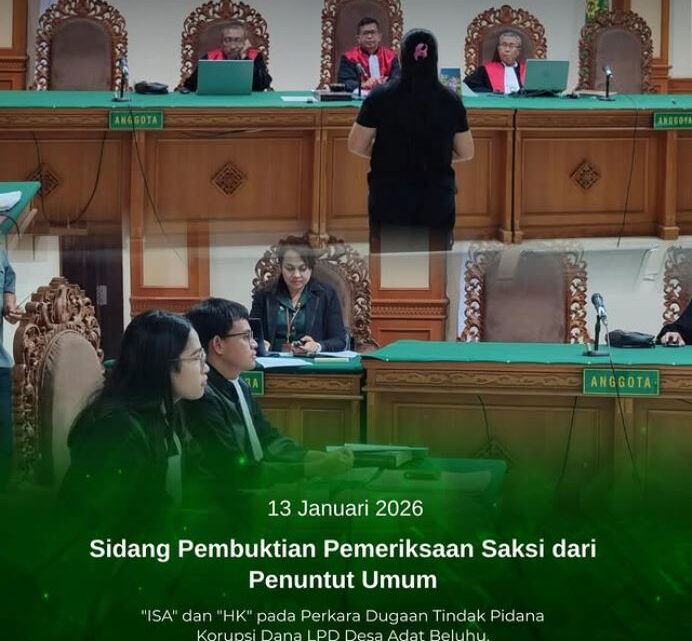 Selasa, 13 Januari 2025, Penuntut Umum Kejaksaan Negeri Karangasem telah menghadiri sidang dengan agenda pembuktian oleh Penuntut Umum. Dalam sidang tersebut, Penuntut Umum menghadirkan dan memeriksa saksi dalam perkara Terdakwa “ISA” dan Terdakwa “HK” dugaan tindak pidana korupsi Dana Lembaga Perkreditan Desa (LPD) Desa Adat Beluhu, Desa Tulamben, Kecamatan Kubu, Kabupaten Karangasem, yang diselenggarakan di Pengadilan Negeri Denpasar Kelas IA Khusus.