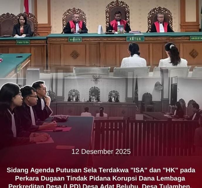 Jumat, 12 Desember 2025 Jaksa Penuntut Umum Kejari Karangasem telah melaksanakan Sidang dengan agenda Putusan Sela Terhadap Terdakwa “ISA” dan “HK” dalam Perkara Dugaan Tindak Pidana Korupsi Dana Lembaga Perkreditan Desa (LPD) Desa Adat Beluhu, Desa Tulamben, Kec. Kubu, Kab. Karangasem di Pengadilan Tipikor pada Pengadilan Negeri Denpasar Kelas IA Khusus adapun isi amar putusan tersebut :