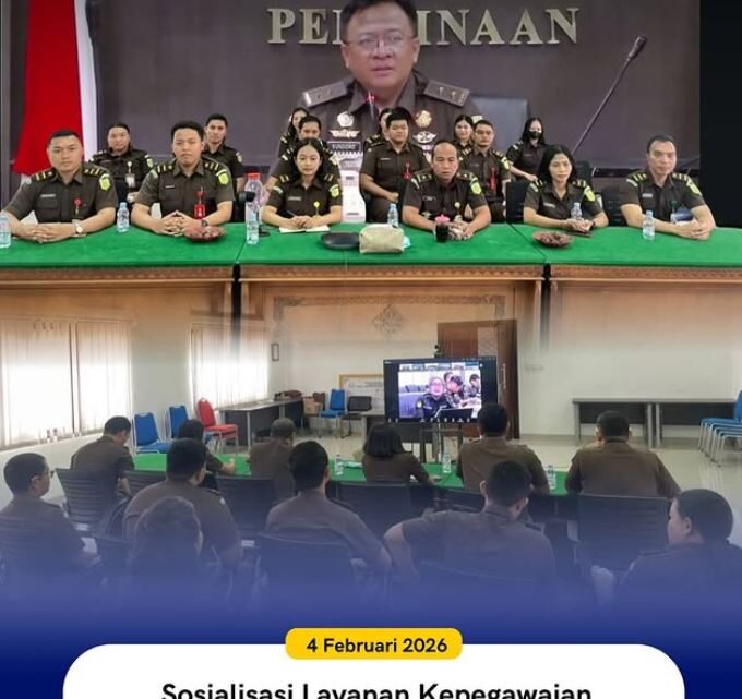 Rabu, 4 Februari 2026 Kasubag Pembinaan, Kaur Kepegawaian beserta jajaran pada Kejaksaan Negeri Karangasem mengikuti kegiatan Sosialisasi Layanan Kepegawaian Kejaksaan RI, yang diselenggarakan secara daring oleh Biro Kepegawaian Kejaksaan RI.