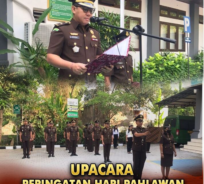 Upacara Peringatan Hari Pahlawan Di Kejaksaan Negeri Karangasem Yang Diikuti Oleh Seluruh Pegawai dan PPNPN pada Kejaksaan Negeri Karangasem Dengan Inspektur Upacara Kasi Pidana Khusus I G.P. Rahadyaksa, S.H.
