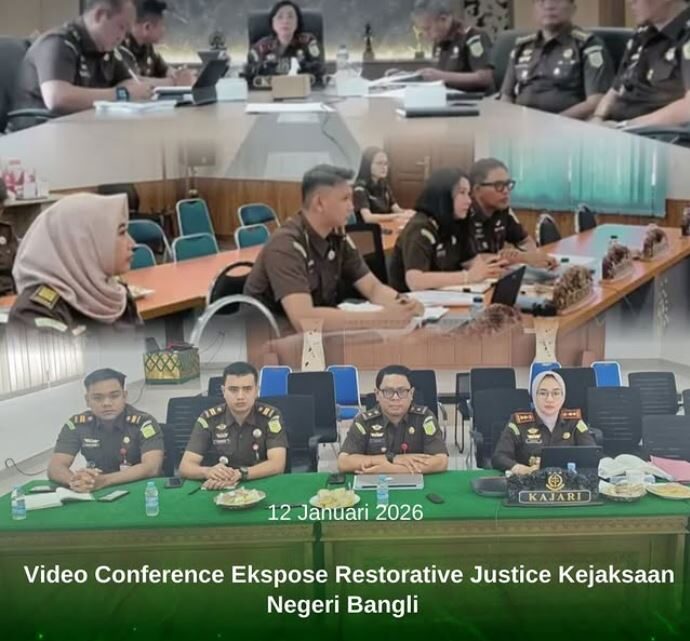 Senin, 12 Januari 2026 Kejaksaan Negeri Karangasem mengikuti Video Conference Ekspose Restorative Justice yang diselenggarakan oleh Kejaksaan Negeri Bangli. Kegiatan ini diikuti oleh Kepala Kejaksaan Negeri Karangasem, Kepala Seksi Tindak Pidana Umum, Kepala Subseksi Tindak Pidana Umum. Kegiatan ini adalah sebagai bagian dari pelaksanaan kewenangan penuntutan yang berorientasi pada keadilan substantif, proporsional, dan berlandaskan nilai kemanusiaan. Kegiatan ini bertujuan untuk memaparkan, menilai, dan memperoleh persetujuan atas penerapan penghentian penuntutan berdasarkan keadilan restoratif, sesuai dengan ketentuan peraturan perundang-undangan yang berlaku.